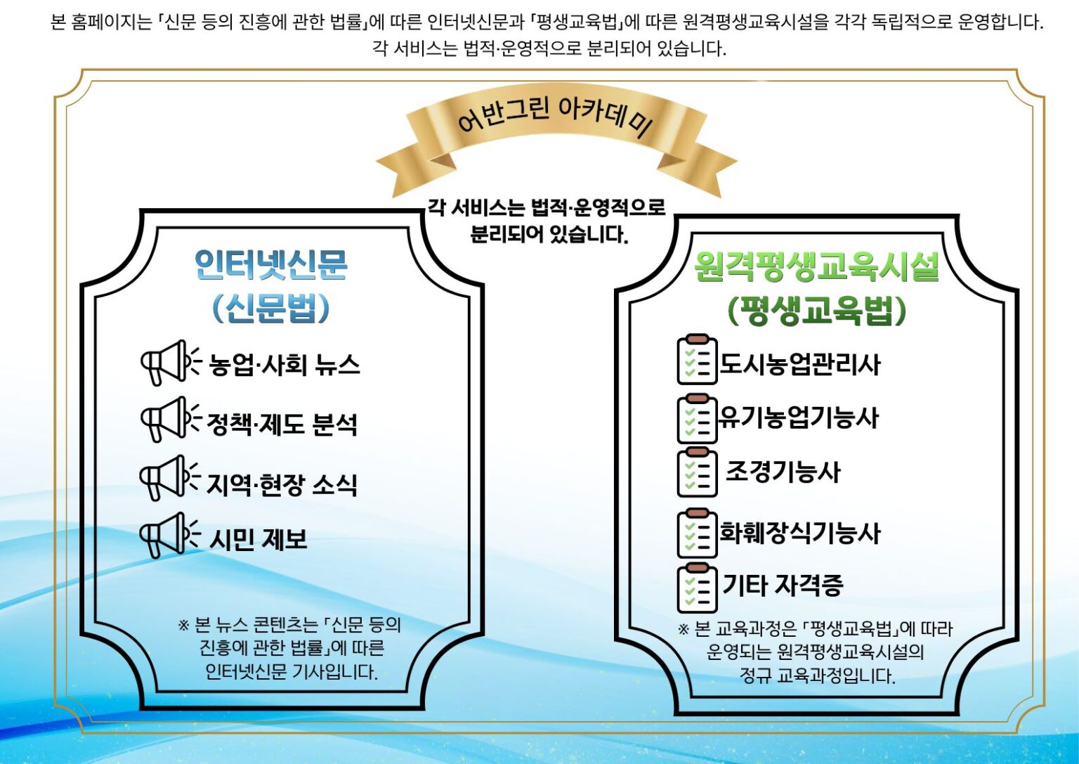 법에 따라 분리 운영되는 원격평생교육과 인터넷신문을 제공하는 도시농업 전문 교육·정보 플랫폼